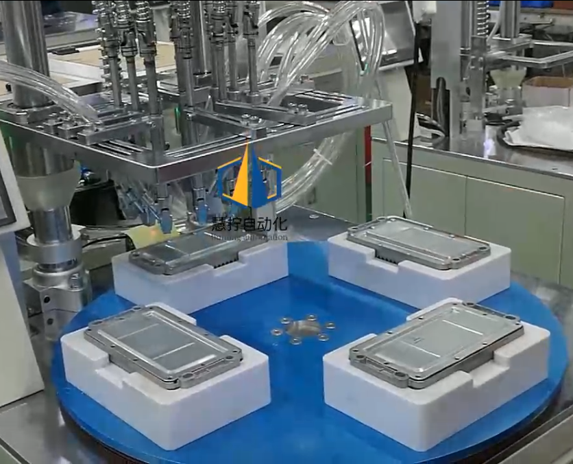 10軸轉(zhuǎn)臺(tái)式自動(dòng)擰螺絲設(shè)備,可一次同時(shí)擰好10顆螺絲,生產(chǎn)效率極高,配置轉(zhuǎn)臺(tái),設(shè)計(jì)專用4工位治具,可在設(shè)備擰螺絲的同時(shí),員工取放產(chǎn)品,實(shí)現(xiàn)同步作業(yè)節(jié)省時(shí)間。下圖為實(shí)際案例圖。
