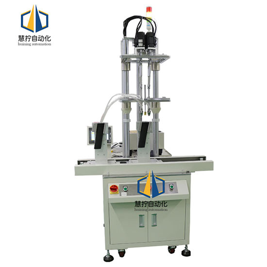 - 左右位移式是在固定的臺(tái)面上設(shè)計(jì)一個(gè)可以左右移動(dòng)的平臺(tái),平臺(tái)上設(shè)計(jì)多個(gè)工位,員工在其中一個(gè)工位上放置產(chǎn)品時(shí),設(shè)備擰其他工位上已經(jīng)放置好的產(chǎn)品,一邊打螺絲,一邊取放產(chǎn)品。